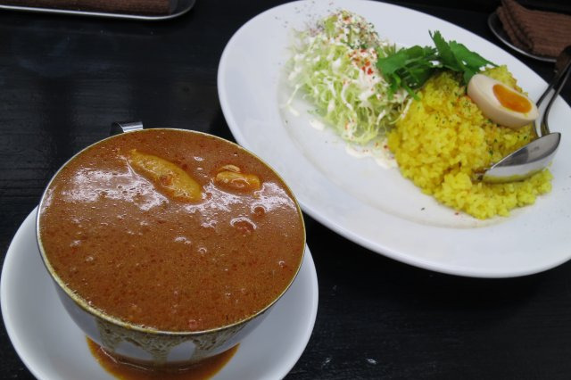 「赤い鶏カレー」はライスとカレーが別スタイル。