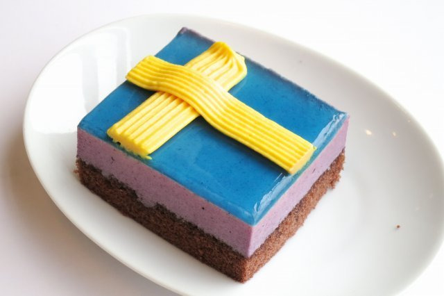 ついでにデザートは国旗のケーキ299円。ちょっとびっくりする色ですが、十字はマンゴー味でした。