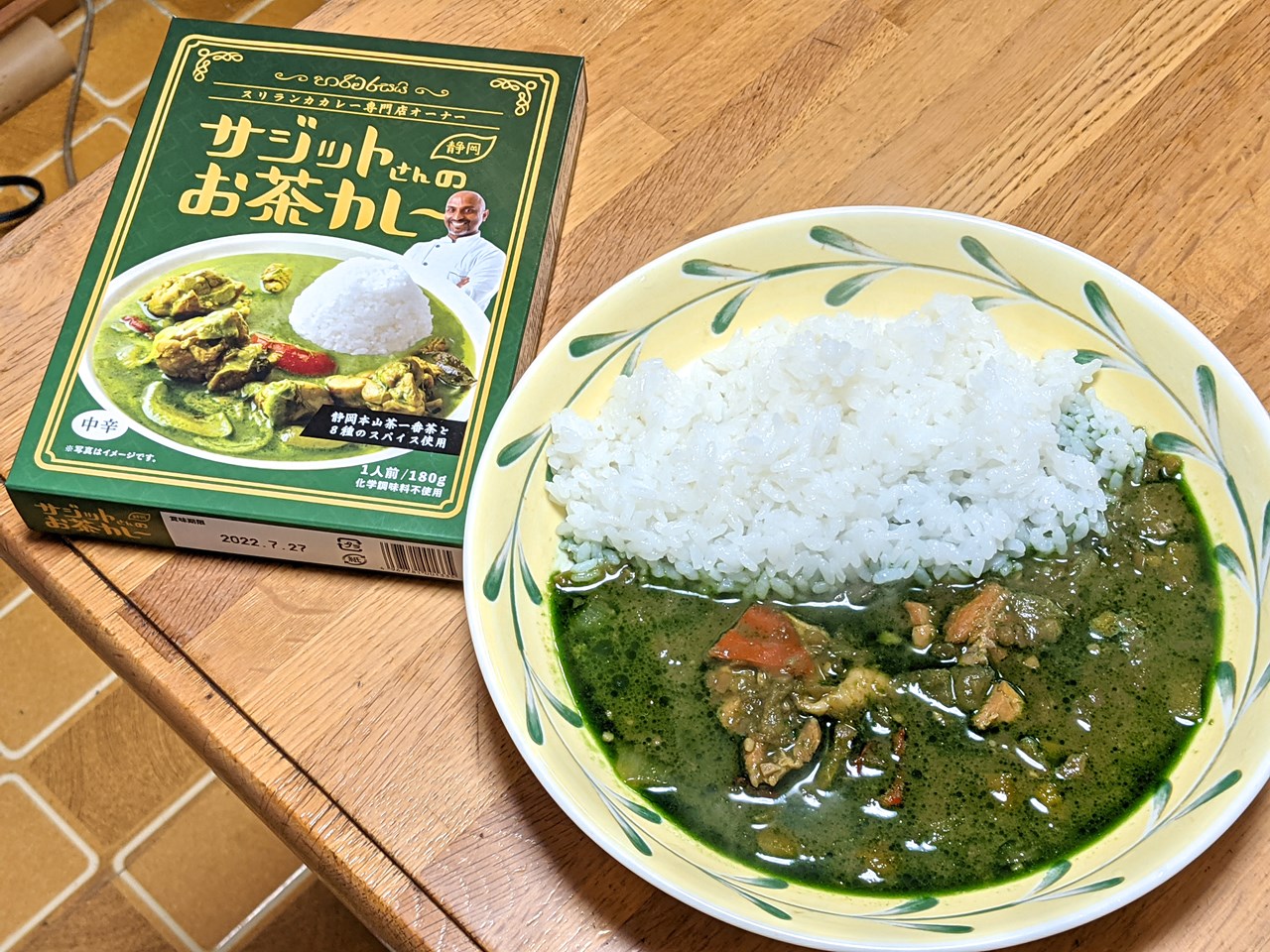 | 味 | サラサラとしたやさしい味のカレーですね。じんわりとした辛さ。お肉も柔らかくて、とっても食べやすいカレーだなと思いました。 ただやはりスパイスがいろいろ入ってるので、繊細なお茶分が負けているかなと気になりました。 |