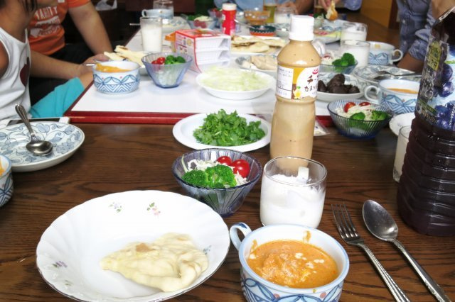 カレーはバターチキンカレーをつくって、ナンとラッシーとサラダもみんなでワイワイ作りました。
